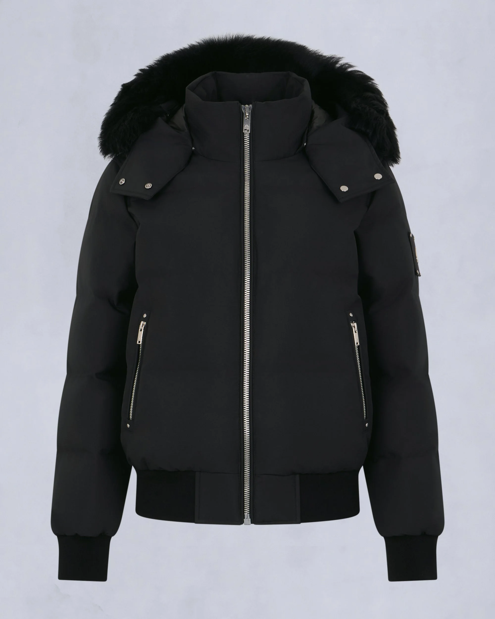 The Cloud Bomber Jacket combines a timeless silhouette with warm-yet-wearable 90/10 down and a water-repellent, wind-resistant shell. A removable two-way hood with detachable shearling trim adds options to your everyday look, while Metaluxe zipper and rib knit hem and cuffs exemplify modern utility. Size & Fit - Regular Fit : Regular is an understated silhouette, cut with room for movement throughout the chest and arms. It offers added agility without sacrificing structure and it comfortably accommodates midweight layers. Those who are in-between sizes or prefer extra room for layering may wish to size up. Product Features Warmth & Protection - Protection Rating - Level 3: Crazy Cold – Heavy and durable, choose these garments when the cold gets serious. - Genuine Sheep Shearling - Engineered in Canada SKU: 822185891309 Materials & Care Composition - Body: 100% Recycled Polyester