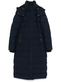Jocada parka Highlights - Oxford blue - Shell - Water-resistant - Water-repellent finish - Wind-resistant - Quilted - Padded design - Concealed front press-stud and zip fastening - Side press-stud fastening - High neck - Detachable drawstring hood - Long sleeves - Logo patch at the sleeve - Ribbed cuffs - Two side zip-fastening pockets - Quilted lining - Straight hem - Mid-length Imported Composition Outer: Nylon 76%, Elastane 24% Lining: Recycled Nylon 100%, Duck Down 90%, Duck Feathers 10% SIZE & FIT Model measurements Height 5 ft 11 in(1.8 m) Bust/Chest 33.07 in(84 cm) Hips 37.4 in(95 cm) Waist 25.19 in(64 cm) FittingInformation Designed for a slim fit that sits just away from the body offering a close yet comfortable fit The detachable panel offers the preference for a different fit Made from a padded non-stretch fabric, giving it no natural elasticity