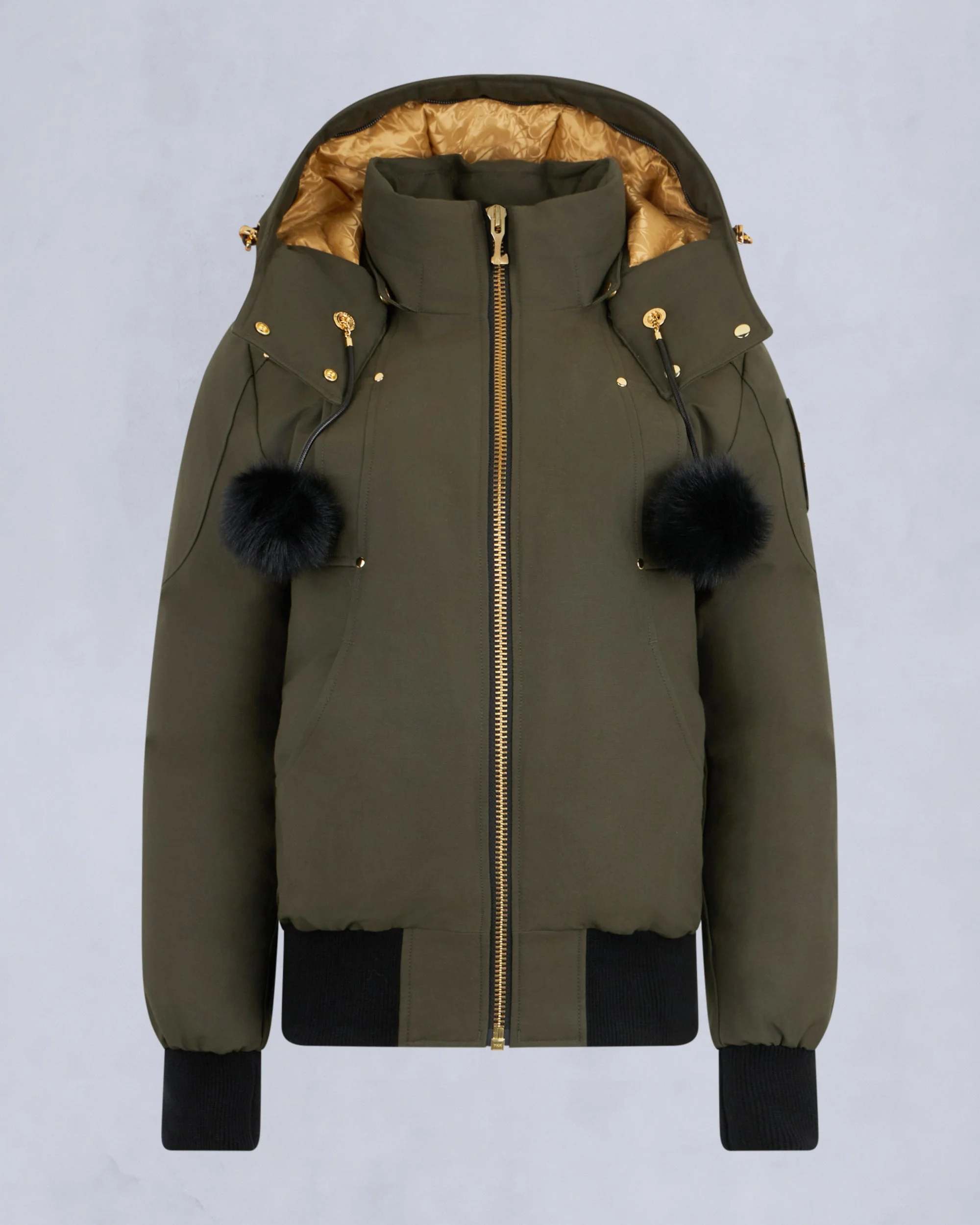 Perfect for adding a chic touch to your cold-weather wardrobe, the Sainte Flavie features water-repellent, wind-resistant outer, 90/10 down, and removable shearling trim and pom poms. You can never go wrong with a Bomber jacket. Size & Fit - Slim Fit : Our signature silhouette, cut close to the body throughout the chest, waist, hip, and thigh. Since it fits slimmer than standard, we recommend sizing up from your usual size if you prefer extra room. - Model is 5'8' wearing size S - 25"(64cm) Center Back Length. Measurement is done based on a Small. Product Features Warmth & Protection - Protection Rating - Level 4: Canada Cold – Tailored and engineered specifically to endure the extreme cold of Canada - the True North. - Genuine Sheep Shearling - Engineered in Canada, Water Repellent, Wind resistant Design & Function - Removable Hood with Removable Shearling Trim And Pom Poms - Down Filled Collar - 1-Way Zipper - 2 Welt Pockets, 2 Slit Pockets - Gold Metal Logo SKU: 822185866567 Materials & Care Fill Responsible Down Standard Certified 90% Duck Down, 10% Feathers Composition - Body: 74% Cotton, 26% Nylon - Lining: 100% Polyester - RDS-Certified Care Remove Detachable Trims Before Cleaning The Garment. Dry Clean Inside Out - Mild Process. Ironing Maximum Temperature 110°C - Without Steam. Country of Origin Made in Vietnam