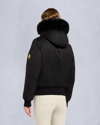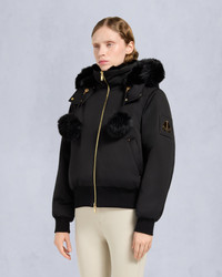 A Moose Knuckles classic, the Debbie Bomber boasts our highest protection rating in a compact, city-driven silhouette. It's engineered with a high-performance satin outer, cozy polyfill, and an adjustable faux fur-lined hood. Decorative pom poms complete the look. Size & Fit - Regular Fit : Regular is an understated silhouette, cut with room for movement throughout the chest and arms. It offers added agility without sacrificing structure and it comfortably accommodates midweight layers. Those who are in-between sizes or prefer extra room for layering may wish to size up. - 24"(61cm) Center Back Length. Measurement is done based on a Small. Product Features Warmth & Protection - Protection Rating - Level 1: Chilly – Ultra-light and minimal. Wear these garments to take the chill off breezy nights or as layering option when things get colder than expected. - 100% Polyester Faux Fur - Engineered in Canada Design & Function - Removable Hood with Faux Fur Trim And Removable Faux Fur Pom Poms - 2-Way Zipper - 2 Snap Pockets - Gold Metal Logo SKU: 822185818320 Materials & Care Composition - Body: 100% Polyester - Lining: 100% Polyester Faux Fur Care Machine wash cold water inside out. Wash dark colors separately. Do not bleach. Line dry. Ironing maximum temperature 110°c. Dry clean inside out - mild process. Country of Origin Made in Vietnam