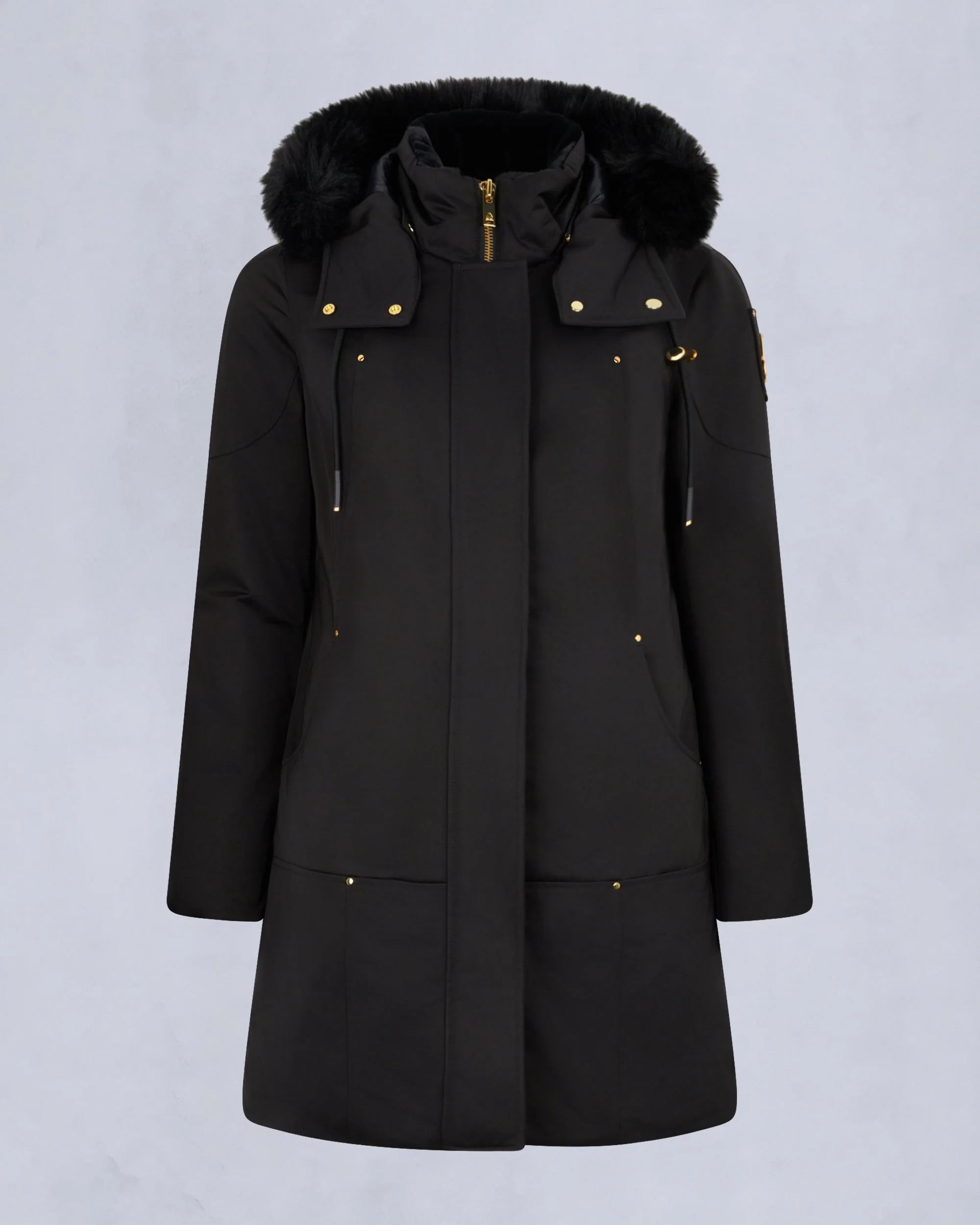 Stay warm and stylish in the Stirling Parka, adorned with our signature Gold accents. Crafted from soft performance satin and extra-cozy recycled polyfill, it features a removable hood with plush faux trim for added versatility. Size & Fit - Slim Fit : Our signature silhouette, cut close to the body throughout the chest, waist, hip, and thigh. Since it fits slimmer than standard, we recommend sizing up from your usual size if you prefer extra room. - 36.5"(93cm) Center Back Length. Measurement is done based on a Small. Product Features Warmth & Protection - Protection Rating - Level 1: Chilly – Ultra-light and minimal. Wear these garments to take the chill off breezy nights or as layering option when things get colder than expected. - 100% Polyester Faux Fur Design & Function - Removable Hood with Faux Fur Trim - Down Filled Collar - 2-Way Zipper - 2 Slit Pockets - Gold Metal Logo SKU: 822185856841 Materials & Care Fill Responsible Down Standard Certified 90% Duck Down, 10% Feathers Composition - Body: 100% Polyester - Lining: 100% Recycled Nylon Care Machine wash cold water inside out. Wash dark colors separately. Do not bleach. Line dry. Ironing maximum temperature 110°c. Dry clean inside out - mild process. Country of Origin Made in Vietnam