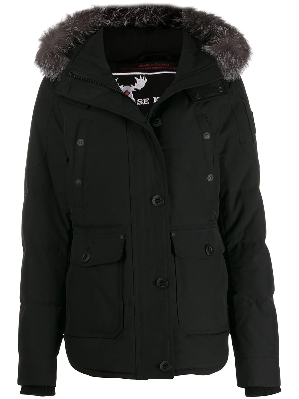 hooded down parka coat Black hooded down parka coat from MOOSE KNUCKLES featuring a faux-fur trimmed hood, a front button fastening, a front zip fastening, long sleeves, front flap pockets, a padded interior and a quilted effect. Imported Composition Lining: Feather Down 100%, Nylon 100% Outer: Polyester 100% SIZE & FIT Model measurements Height 5 ft 10 in(1.77 m) Bust/Chest 35.03 in(89 cm) Hips 36.22 in(92 cm) Waist 25.98 in(66 cm) FittingInformation This piece fits true to size. We recommend you get your regular size Cut for a relaxed fit Made with a mid-weight non-stretch fabric Washing instructions Dry Clean Only