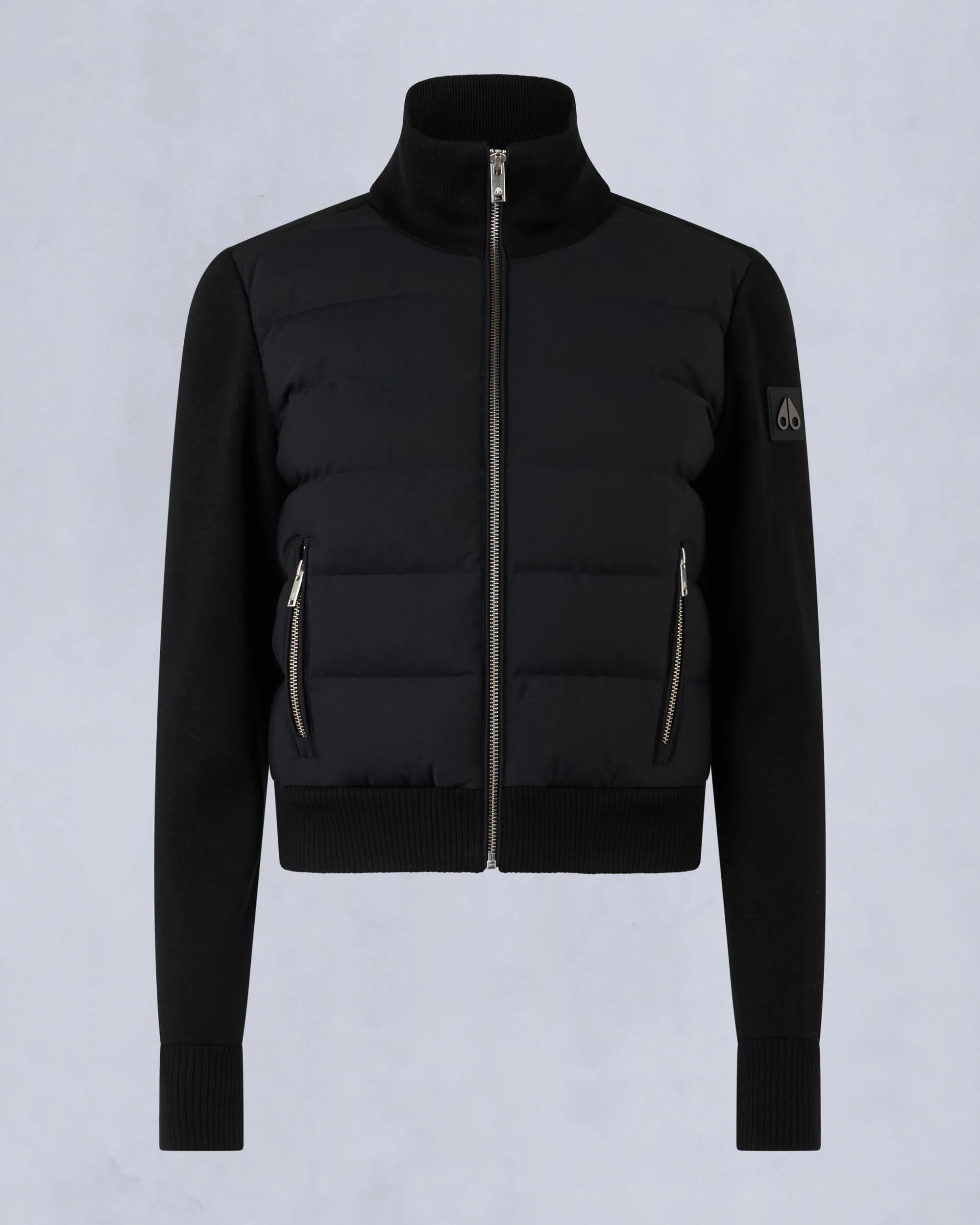 Experience the best of both worlds with our sweater-jacket hybrid, featuring cozy sweater sleeves and a down-filled bodice for ultimate warmth and style. Perfect for transitioning between seasons, it offers comfort and sophistication in one design. Size & Fit - Slim Fit : Our signature silhouette, cut close to the body throughout the chest, waist, hip, and thigh. Since it fits slimmer than standard, we recommend sizing up from your usual size if you prefer extra room. - 21.75"-55cm Center Back Length. Measurement is done based on a Small. Product Features Warmth & Protection - 800 Fill Power - Engineered in Canada, RDS-Certified, Water Repellent, Water Resistant, Wind resistant Design & Function - Rib Knit Collar - 1-Way Zipper - 2 Zip Pockets - Silicone Logo Patch SKU: 822185791579 Materials & Care Fill Responsible Down Standard Certified 90% Duck Down, 10% Feathers Composition - Body: 72% Viscose, 28% Polyester - Lining: 76% Nylon, 24% Elastane Care Hand Wash Separately In Warm Water. Do Not Bleach. Lay Flat To Dry. Ironing Maximum Temperature 110°C. Dry Clean Inside Out - Mild Process. Country of Origin Made in China