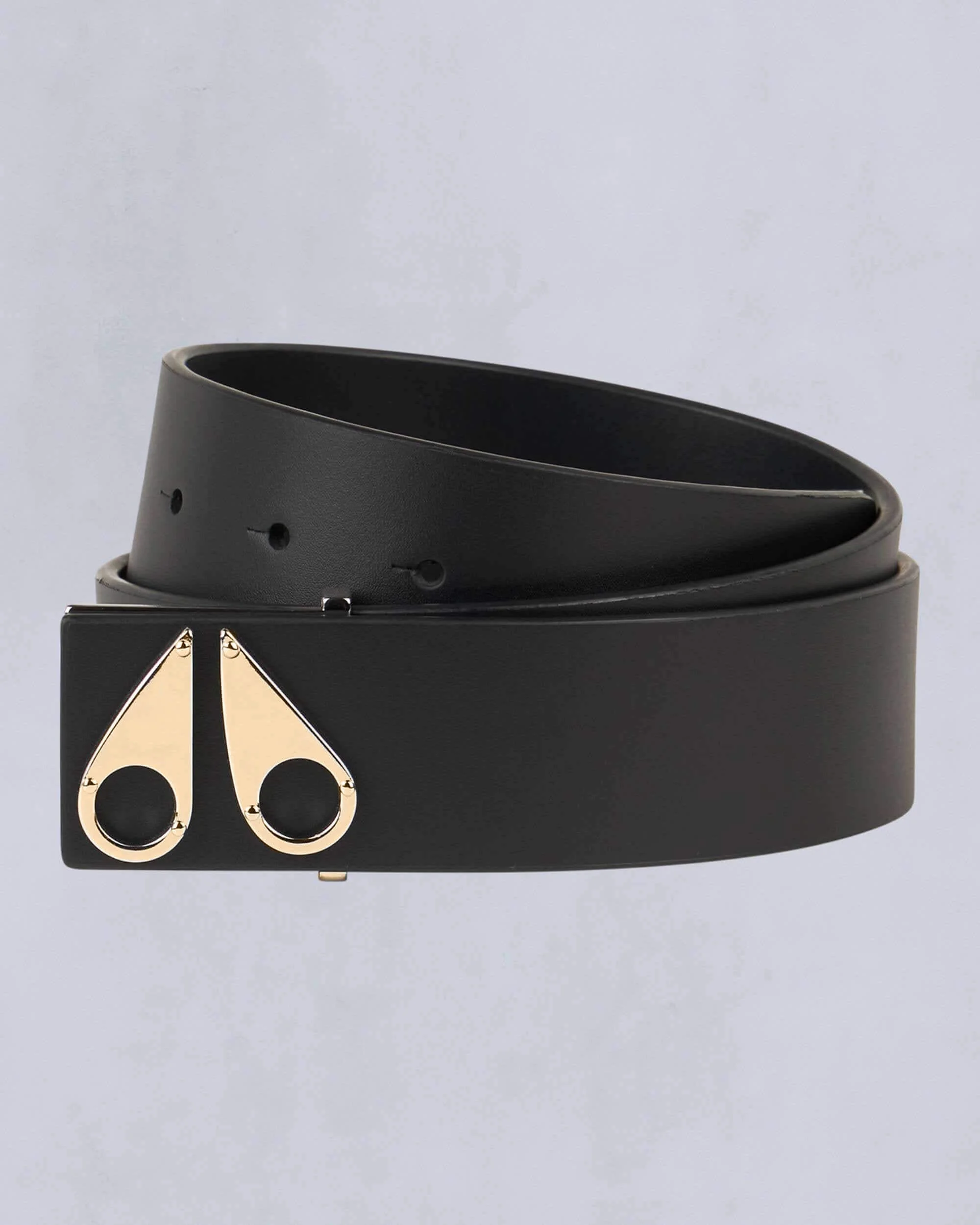 An essential belt should be of fine quality that complements most of your wardrobe, and the Logo Icon Belt is just that. Crafted from premium black leather, the highlight of the design emerges by way of metal Moose Knuckles logo, which serves as branded embellishment and buckle closure. The logo buckle is available in gold or silver so you can choose the version that best suits your style. Size & Fit . Product Features Warmth & Protection - Engineered in Canada Design & Function - Gold Metal Logo SKU: 822185599618 Materials & Care Composition - Body: 100% Genuine Leather Care Spot Wash Only. Country of Origin Made in Taiwan