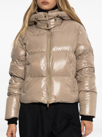 beige shiny shell drawstring hood zip fastening quilted design gold-tone hardware - Color: NEUTRALS - Made in: Korea, Republic of - Designer Style ID: M35LJ148G 1491 Composition and care Outer Composition Nylon: 100.0%, Lining Composition Feather: 10.0%, Lining Composition Down: 90.0%, Lining Composition Vinylon: 100.0%