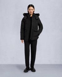 The Onyx Anguille Jacket updates our jacket silhouette with a sharp focus on city refinement. The hip-length jacket features premium 90/10 goose down fill to provide weightless warmth at our highest protection rating and a down-proof liner to minimize down loss. A timeless investment, it has a water-repellent and wind-resistant outer shell with a silky-soft finish, while the removable hood features a plush lamb shearling trim. Size & Fit - Slim Fit : Our signature silhouette, cut close to the body throughout the chest, waist, hip, and thigh. Since it fits slimmer than standard, we recommend sizing up from your usual size if you prefer extra room. - 30.25"-77cm Center Back Length. Measurement is done based on a Small. Product Features Warmth & Protection - Protection Rating - Level 4: Canada Cold – Tailored and engineered specifically to endure the extreme cold of Canada - the True North. - 800 Fill Power - Genuine Sheep Shearling - Engineered in Canada, RDS-Certified, Water Repellent, Water Resistant, Wind resistant Design & Function - Removable Hood with Shearling Trim - 1-Way Zipper with Placket and Buttons - 2 Snap Pockets, 2 Button Pockets, 2 Slit Pockets - Metal Logo SKU: 822185771038 Materials & Care Fill Responsible Down Standard Certified 90% Goose Down, 10% Feathers Composition - Body: 100% Polyester - Lining: 100% Nylon - RDS-Certified Care Remove Detachable Trims Before Cleaning The Garment. Dry Clean Inside Out - Mild Process. Ironing Maximum Temperature 110°C - Without Steam. Country of Origin Made in Vietnam