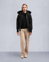The Original Debbie Bomber is a Moose Knuckles classic that boasts our highest protection rating in a compact, city-driven silhouette. It's engineered with a durable water-repellent shell, 4-ply "down-proof" construction to minimize down loss, and an enduringly warm 80/20 down fill. Our gleaming metal logo at the sleeve completes the piece. SIZE & FIT - Regular Fit: Regular is an understated silhouette, cut with room for movement throughout the chest and arms. It offers added agility without sacrificing structure and it comfortably accommodates midweight layers. - Model is wearing size S. Model is 5'9" (176cm) - 26.5" (67cm) Back Length. Measurement is done based on a Small. WARMTH & PROTECTION - Protection Rating - Level 4: Canada Cold – Tailored and engineered specifically to endure the extreme cold of Canada - the True North. - 650 Fill Power - Toscana Shearling on Trim - Engineered in Canada, RDS Sustainable, Water Repellent, Water Resistant, Wind resistant DESIGN & FUNCTION - 2-Way Adjustable Hood with Attached Shearling Trim - 2-Way Zipper with Axe Puller - 2 Chest Pockets and 2 Pockets below Waist - Side Seam Vents with Zipper Closure - Metal Logo CARE & MATERIALS Remove Detachable Trims Before Cleaning The Garment. Dry Clean Inside Out - Mild Process. Ironing Maximum Temperature 110°C - Without Steam. FILL 80% Duck Down, 20% Feathers COMPOSITION - Body: 74% Cotton, 26% Nylon - Cotton - Lining: 100% Nylon COUNTRY OF ORIGIN Made in Vietnam