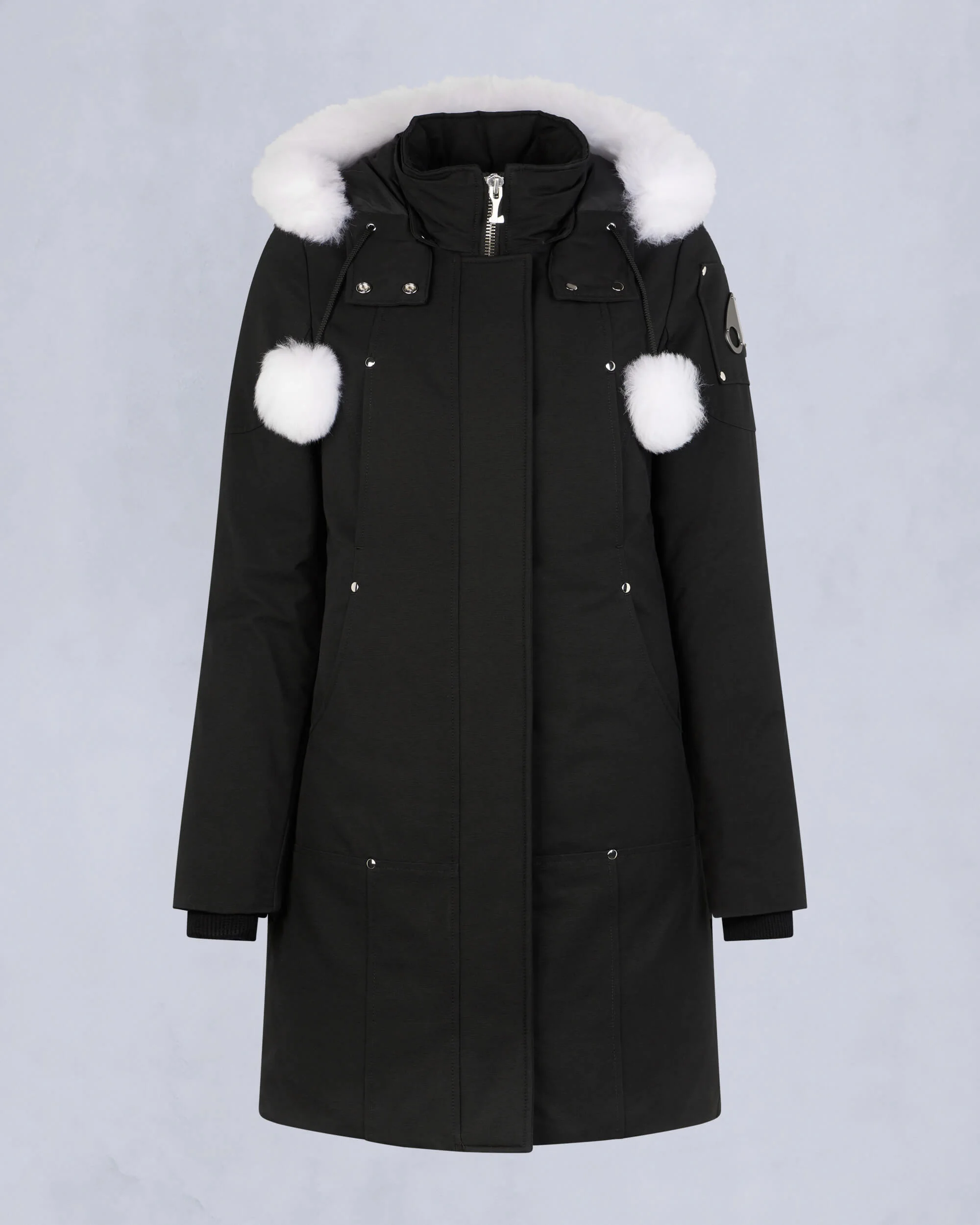 The OriGinal Stirling Parka NeoShear is the original Moose Knuckles parka. Its durable cotton/nylon blend shell, 4-ply "down-proof" construction, 80/20 down fill, and our signature J-seam detailing have become synonymous with lasting durability, unparalleled warmth, and refined style. In addition, this iteration features a lamb shearling-trimmed removable hood for added warmth. Size & Fit - Slim Fit : Our signature silhouette, cut close to the body throughout the chest, waist, hip, and thigh. Since it fits slimmer than standard, we recommend sizing up from your usual size if you prefer extra room. - Model is wearing size S. Models are 5'8", 5'9" and 5'10". - 37 1/2" Back Length. Measurement is done based on a small. Product Features Warmth & Protection - Protection Rating - Level 4: Canada Cold – Tailored and engineered specifically to endure the extreme cold of Canada - the True North. - 650 Fill Power - Shearling - Engineered in Canada, RDS-Certified, Water Repellent, Water Resistant, Wind resistant Design & Function - Snap Off Hood with Fixed Shearling Trim - Stand Collar - YKK Metal Zipper with Logo Puller - 4 Plush Lined Signature "J Front" Pockets, Two Inside Zipper Pockets - Each metal Iconic logo at the sleeve is hand-selected during construction, making every piece as unique as the wearer SKU: 822185444581 Warranty Limited Lifetime Warranty General Warranty Materials & Care Fill Responsible Down Standard Certified 80% Duck Down, 20% Feathers Composition - Body: 74% Cotton, 26% Nylon - Lining: 100% Nylon - RDS-Certified Care Exclusive of fur and trims, dry clean only. Dry cleaner to dry clean inside out. Tumble dry until garment is fully dried. Country of Origin Made in Canada with Canadian and Imported Materials