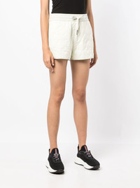 quilted recycled nylon shorts Highlights - White - Recycled nylon - Quilted - Two rear flap pockets - Drawstring waist Imported Composition Recycled Nylon 100% SIZE & FIT Model measurements Height 5 ft 10 in(1.77 m) Bust/Chest 31.49 in(80 cm) Hips 35.43 in(90 cm) Waist 25.19 in(64 cm) FittingInformation This piece fits true to size. We recommend you get your regular size Designed to be fitted at the waist, loose over the leg Made with a mid-weight non-stretch fabric