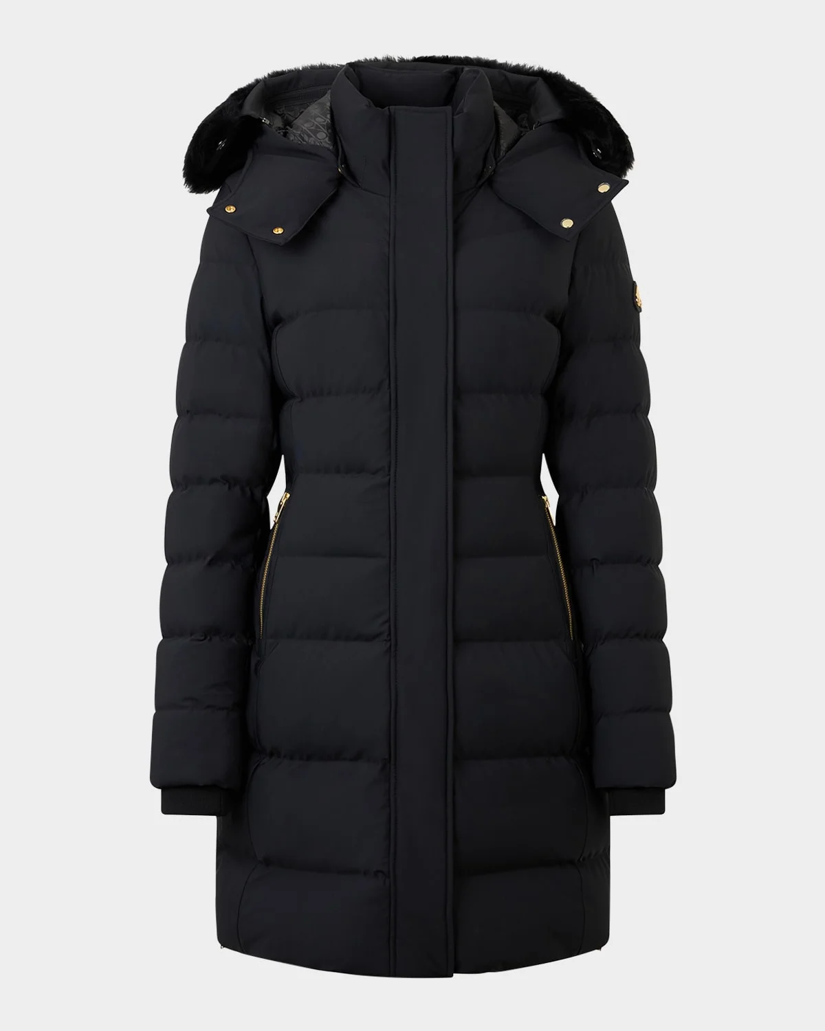 Crafted in Nyluxe with a matte finish, the "Watershed 3" parka from the Moose Knuckles Gold Series collection features a hood with faux fur trim that can be removed for versatile styling. Coldweather protection down to 4°F. Waterrepellent and windresistant Stand collar Long sleeves with storm cuffs Signature metal logo plaque on the left sleeve Zip pockets Slim fit Side zip vents for added movement Twoway zipfront Amni® nylon Fill: Down/feather Lining: Polyester Trim: Faux fur Machine wash cold Imported