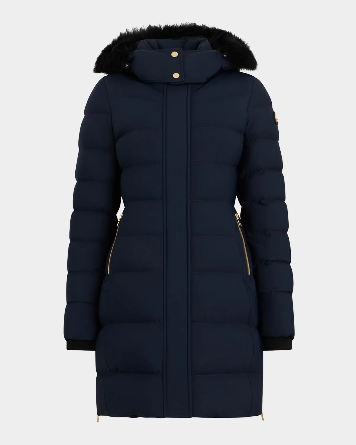 Crafted in Nyluxe with a matte finish, the "Watershed 3" parka from the Moose Knuckles Gold Series collection features a hood with faux fur trim that can be removed for versatile styling. Coldweather protection down to 4°F. Waterrepellent and windresistant Stand collar Long sleeves with storm cuffs Signature metal logo plaque on the left sleeve Zip pockets Slim fit Side zip vents for added movement Twoway zipfront Amni® nylon Fill: Down/feather Lining: Polyester Trim: Faux fur Machine wash cold Imported