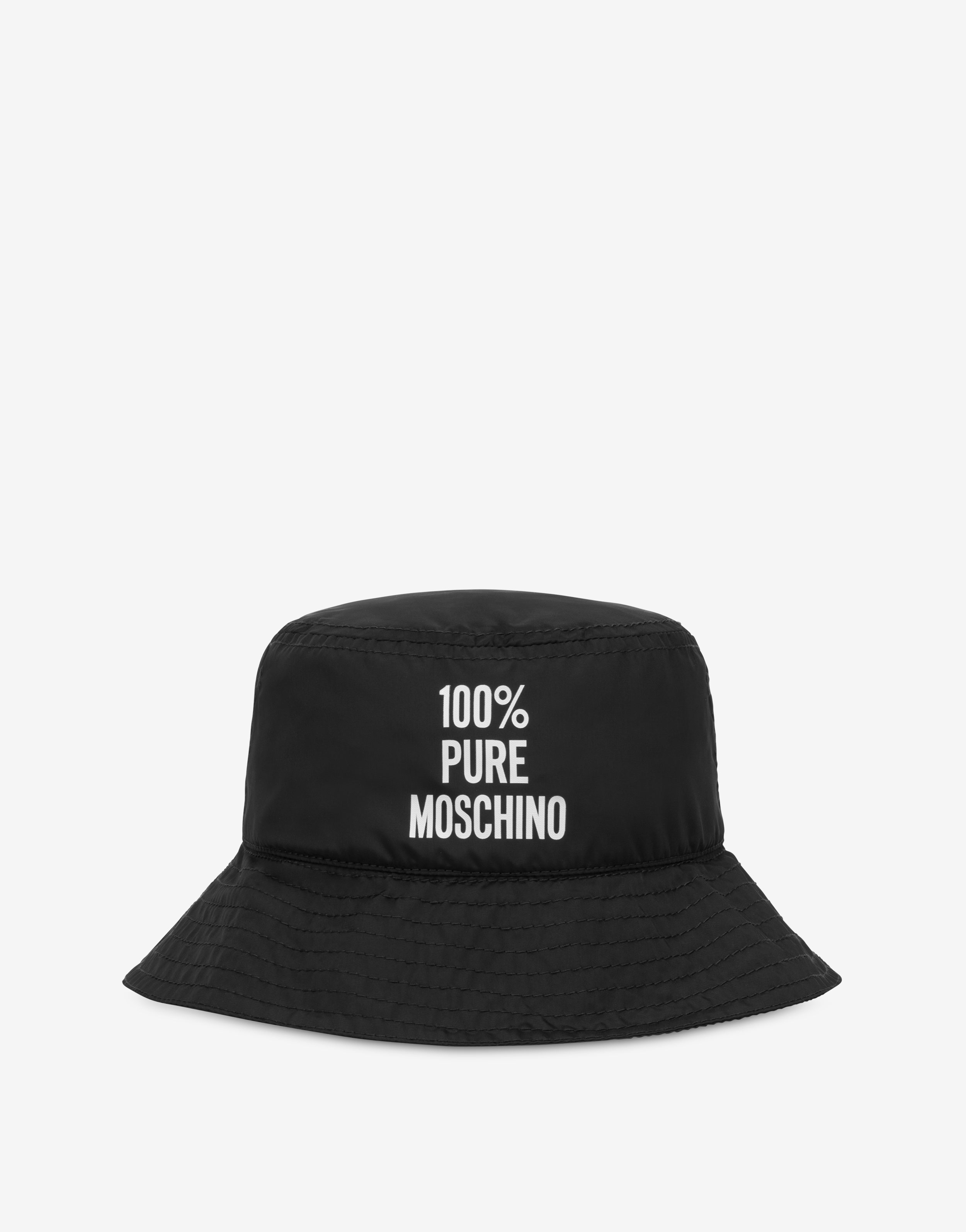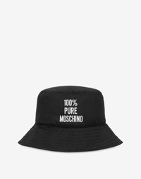 Nylon bucket hat with contrasting 100% Pure Moschino slogan print. - Bucket hat - Print on the front - Unstructured and sloping brim - Lined interior Fabric:100% Polyamide Lining:100% Viscose Code: AEF2417 920482671555