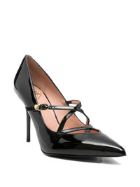 100mm leather cross-strap pumps Highlights - Black - Leather - Stiletto heel - Cross-strap detail - Pointed toe - Buckle fastening Made in Italy Composition Sole: Rubber 100% Lining: Calf Leather 100% Outer: Patent Leather 100% SIZE & FIT Measurement HEEL 3.93 in(10 cm)