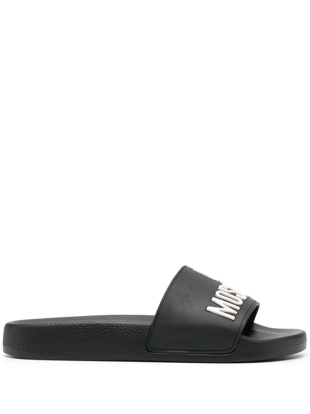 3D-logo flat slides Highlights - Black - 3d detailing - Branded insole - Open toe - Single toe strap - Flat sole Made in Italy Composition PVC 100% SIZE & FIT Measurement HEEL 0.98 in(2.5 cm) Sole height 0.59 in(1.5 cm)