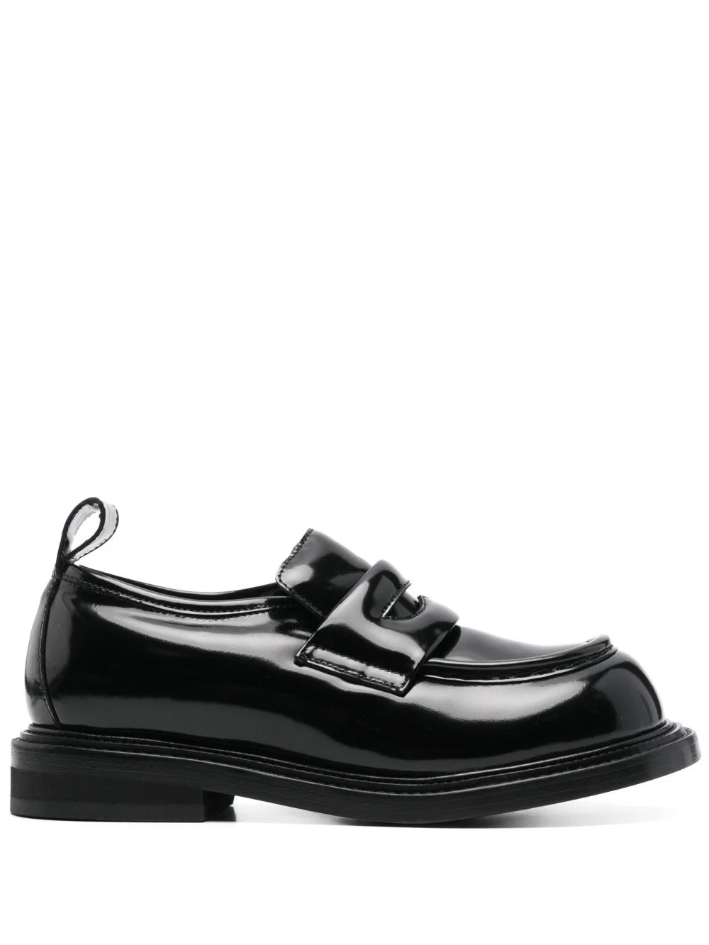 patent-leather loafers Highlights - Black - Branded leather insole - Flat leather sole - Pull-tab at the heel - Penny slot Made in Italy Composition Lining: Calf Leather 100% Sole: Calf Leather 100% Outer: Calf Leather 100%