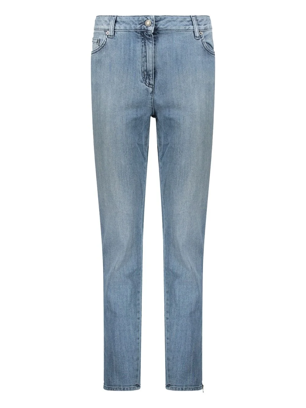 bleached-effect jeans Highlights - Light blue - Button fly fastening - Ankle zips - Classic five pockets - Belt loops Made in Italy Composition Cotton 98%, Elastane 2% Washing instructions Machine Wash