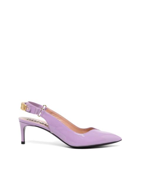 55mm leather pumps Highlights - White - Leather - Gold-tone logo lettering - Pointed toe - Buckle-fastening slingback strap - Branded leather insole - Leather lining - Mid heel - Leather sole Made in Italy Composition Leather 100% SIZE & FIT Measurement HEEL 2.55 in(6.5 cm)