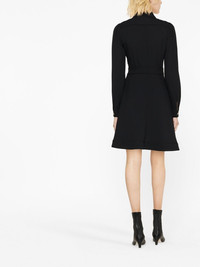 A-line mini shirt dress Moschino presents its take on the shirt dress, flaring the skirt into an elegant A-line silhouette. The tonal black dress is adorned with gold-tone buttons for a refined touch. Made in Italy Composition Lining: Acetate 60%, Cupro 40% Outer: Acetate 70%, Viscose 30% SIZE & FIT Model measurements Height 5 ft 10 in(1.79 m) Bust/Chest 31.49 in(80 cm) Hips 35.03 in(89 cm) Waist 23.62 in(60 cm) FittingInformation This piece fits true to size. We recommend you get your regular size Designed for a close fit at the bust and waist, but loose at the hip Made with a mid-weight non-stretch fabric Washing instructions Dry Clean Only