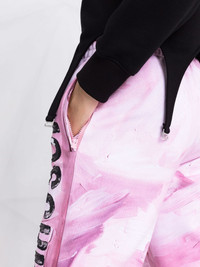 abstract-print branded track trousers fantasia pink cotton jersey fleece abstract pattern print logo print to the side elasticated waistband stretch-design slim cut two side slit pockets elasticated ankles Imported Composition Cotton 100% SIZE & FIT Model measurements Height 5 ft 10 in(1.77 m) Bust/Chest 32.67 in(83 cm) Hips 35.43 in(90 cm) Waist 23.62 in(60 cm) FittingInformation This piece fits true to size. We recommend you get your regular size Designed to be loose over the leg with a fitted waist and hem Made with a mid-weight fabric Washing instructions Hand Wash