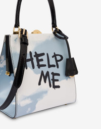 THE FALL/WINTER 2025 PRE-COLLECTION PRESENTS A HANDBAG IN BRUSHED CALFSKIN WITH AN ALL-OVER ARCHIVE CLOUD PRINT AND “HELP ME” LETTERING ON THE FRONT. PRODUCT DETAILS - REMOVABLE LEATHER LOGO CHARM - ROUND HANDLE - ADJUSTABLE AND REMOVABLE SHOULDER STRAP WITH METAL BUCKLE - GOLD PLATING - METAL CLOSURE - METAL FEET - SMALL INTERNAL POCKET - LINED UPPER: 100% CALFSKIN - LINING: 60% POLYAMIDE, 40% POLYURETHANE SKU: POLMC4029PP1NOK610A