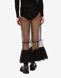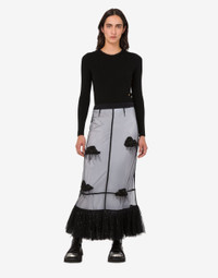 THE FALL/WINTER 2025 COLLECTION FEATURES A LONG STRETCH TULLE SKIRT WITH EMBROIDERY IN THE SHAPE OF SMALL CLOUDS. THE DOUBLE-LAYERED BOTTOM IS EMBROIDERED WITH BLACK RHINESTONES. PRODUCT DETAILS REGULAR FIT - ZIP SIDE CLOSURE - SMALL SLIT IN THE BACK - REMOVABLE UNDERSKIRT FABRIC: 89% POLYAMIDE, 11% ELASTAN SKU: AEF252D A011554671555