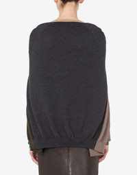 EXTRA-FINE MERINO WOOL CARDIGAN WITH A PATCHWORK EFFECT AND DECORATIVE SLEEVE DETAILS TO TIE AT THE FRONT. LOOSE FIT V-NECK LONG SLEEVES DECORATIVE SLEEVES FRONT BUTTON CLOSURE FABRIC: 100% PURE WOOL CODE: AEF242D 090654011091