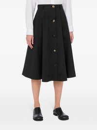 A-line midi skirt Highlights - Black - Front button fastening - Belt loops - Straight hem - Knee-length Made in Italy Composition Cotton 94%, Elastane 6% SIZE & FIT Measurement HIPS 47.24 in(120 cm) LENGTH 30.31 in(77 cm) WAIST 29.13 in(74 cm)