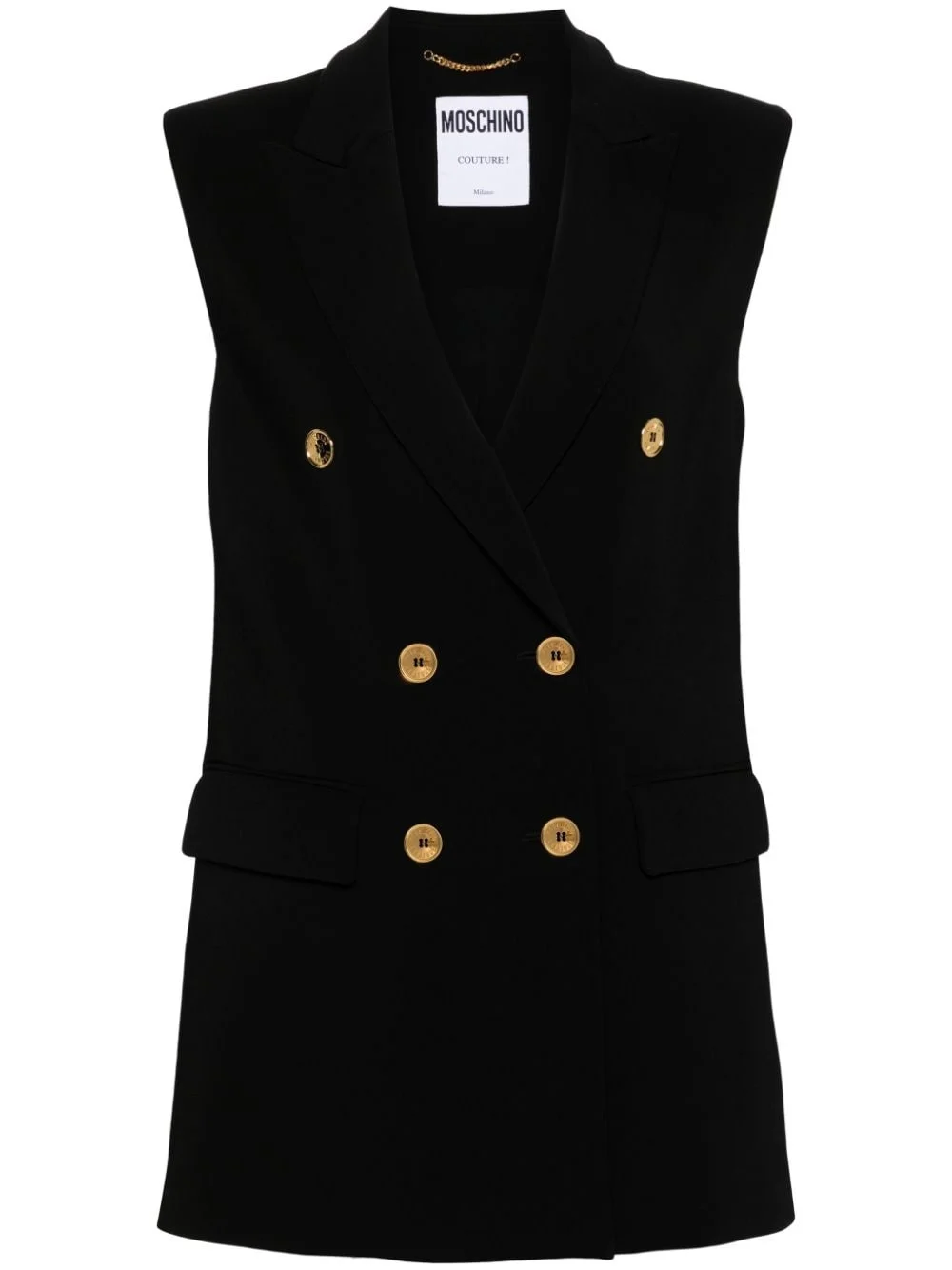 blazer-style gilet Highlights - Black - Peak lapels - Shoulder pads - Sleeveless - Two front flap pockets - Central rear vent - Logo-debossed buttons - Full lining - Straight hem - Front button fastening Made in Italy Composition Outer: Viscose 97%, Elastane 3% Lining: Acetate 83%, Silk 17% SIZE & FIT Model measurements Height 5 ft 10 in(1.77 m) Bust/Chest 31.88 in(81 cm) Hips 36.22 in(92 cm) Waist 24.01 in(61 cm) FittingInformation Designed for a slim fit that sits just away from the body offering a close yet comfortable fit The internal shoulder pads offer a structured shape Made from a midweight fabric This piece fits true to size – take your usual size