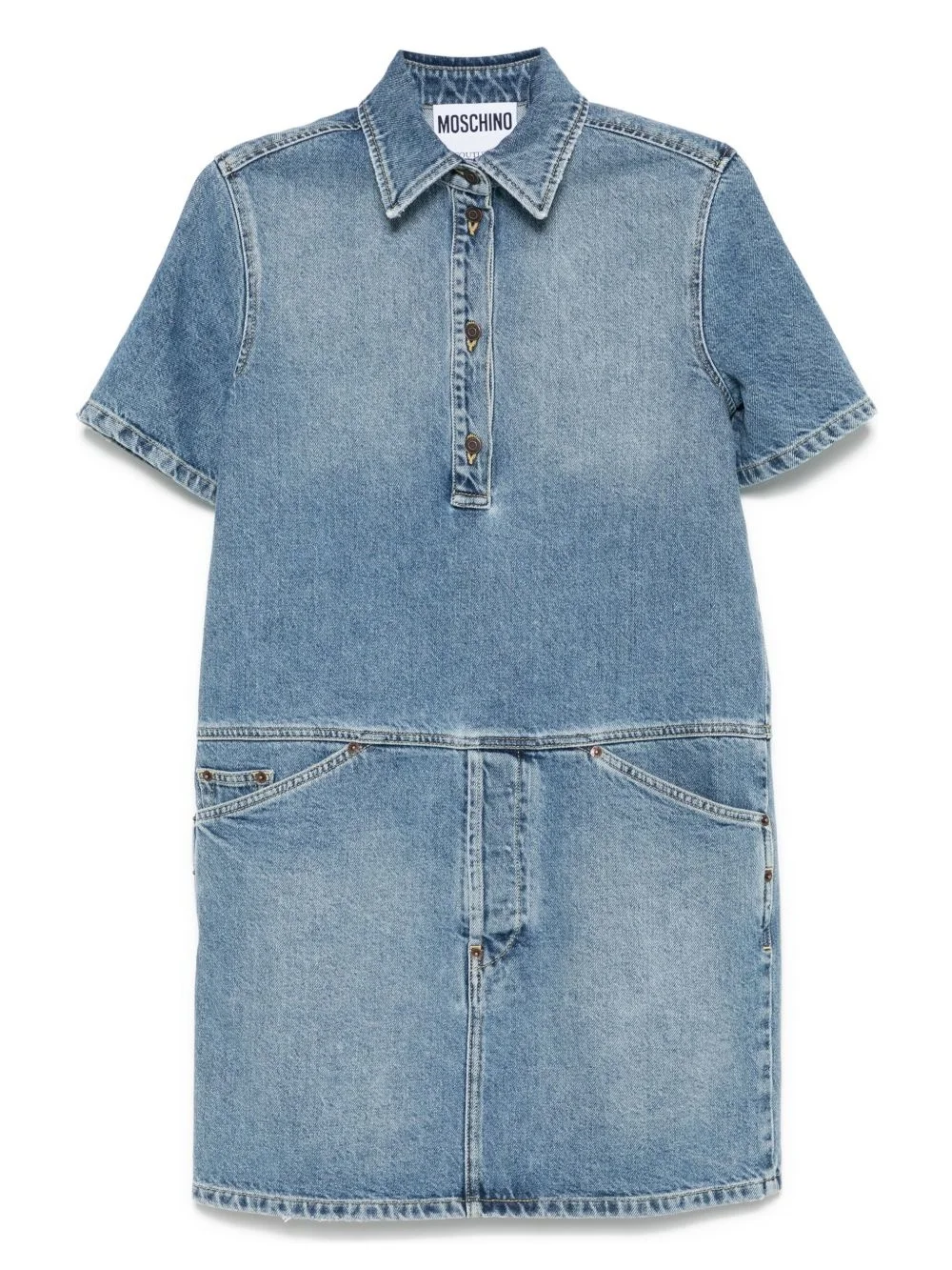 denim mini dress Highlights - Light blue - Short front button fastening - Short sleeves - Classic five pockets - Classic collar Made in Italy Composition Lining: Polyester 65%, Cotton 35% Outer: Cotton 100% SIZE & FIT Model measurements Height 5 ft 11 in(1.8 m) Bust/Chest 31.49 in(80 cm) Hips 36.61 in(93 cm) Waist 24.4 in(62 cm) FittingInformation Designed for a relaxed fit, this piece allows for comfort and movement when worn Made from a midweight non-stretch fabric