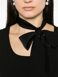 bow-detail sleeveless blouse Moschino briefly steps away from its whimsical aesthetic and takes a rather elegant route with this sleeveless blouse. It offers a contemporary look with an oversized bow fastening at the collar and a discreet black hue. Highlights - Black - Round neck - Pussy-bow fastening - Sleeveless - Straight hem Imported Composition Acetate 70%, Viscose 30% SIZE & FIT Model measurements Height 5 ft 11 in(1.8 m) Bust/Chest 33.07 in(84 cm) Hips 37.4 in(95 cm) Waist 25.19 in(64 cm) FittingInformation Designed for a relaxed fit, this piece allows for comfort and movement when worn The tie fastening gives an adaptable and personalised fit Made from a lightweight non-stretch fabric This piece fits true to size – take your usual size Washing instructions Dry Clean Only