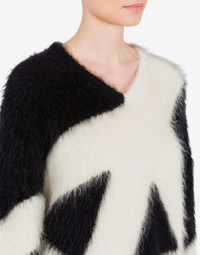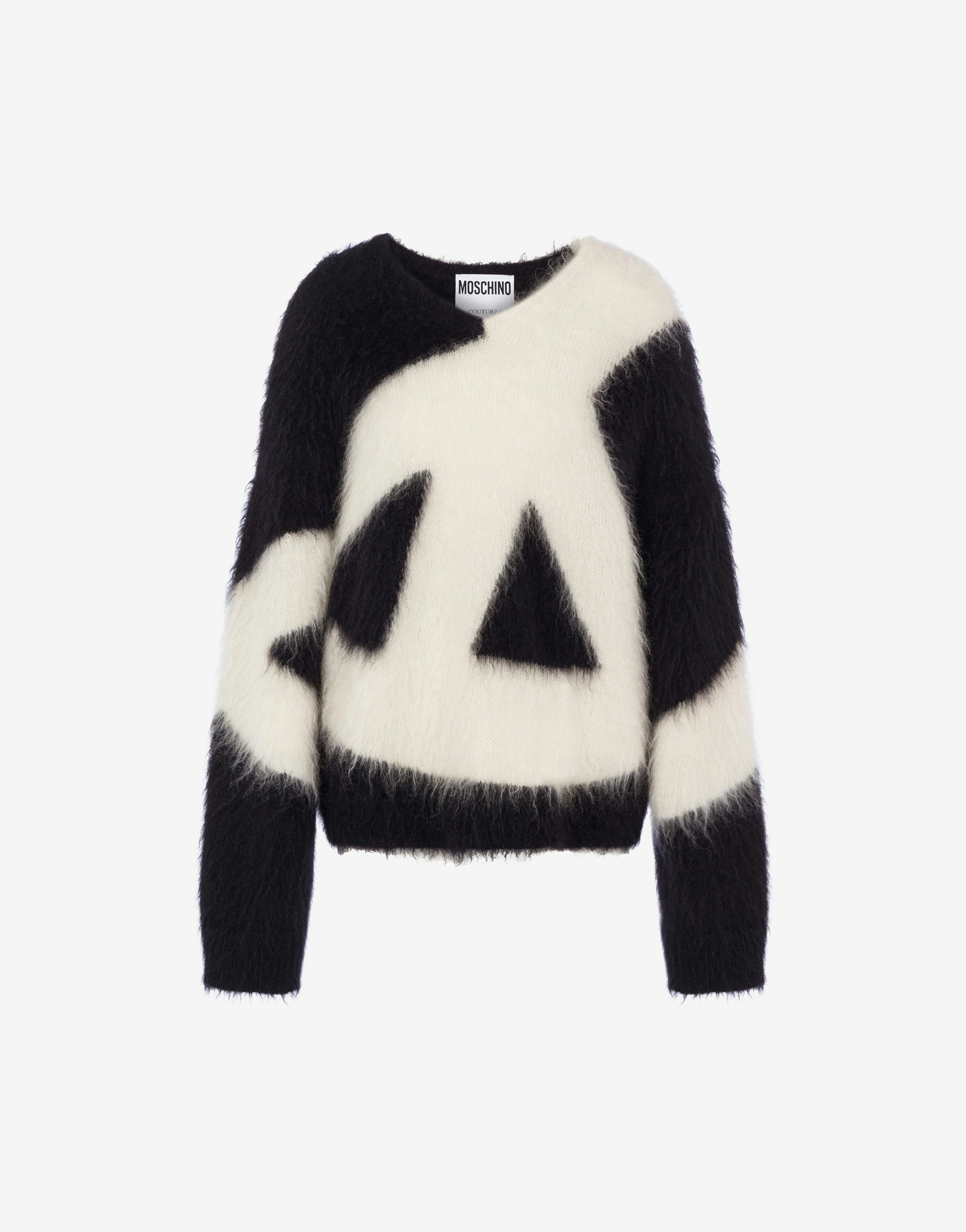 BRUSHED MOHAIR SWEATER WITH A RELAXED FIT, WITH A CONTRASTING MAXI PEACE SYMBOL INTARSIA. RELAXED FIT V-NECK DROPPED SHOULDERS FABRIC: 50% MOHAIR, 32% POLYAMIDE, 18% PURE WOOL CODE: AEF242D 092454031555