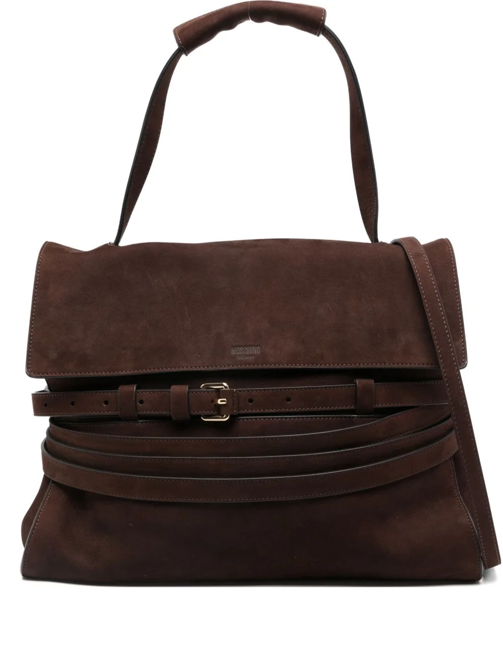 buckle nubuck leather tote bag Highlights - Brown - Nubuck leather - Top handle - Buckle fastening - Internal slip pocket - Wrap-around strap Imported Composition Outer: Nubuck Leather 100% SIZE & FIT Model measurements Height 5 ft 10 in(1.79 m) Bust/Chest 30.31 in(77 cm) Hips 34.64 in(88 cm) Waist 23.62 in(60 cm) Measurement DEPTH 6.69 in(17 cm) WIDTH 14.96 in(38 cm) HEIGHT 11.81 in(30 cm)