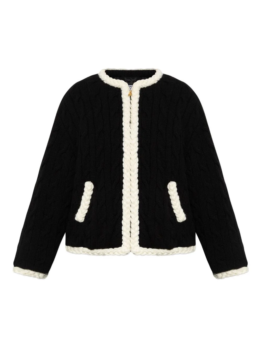 cable-knit elbow-patch jacket Highlights - Black - Cable knit - Braided trim - Elbow patches - Zip fastening Made in Italy Composition Acrylic 45%, Alpaca 40%, Wool 15% Washing instructions Read Manufacturer Guidelines