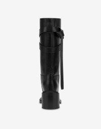 THE FALL/WINTER 2025 PRE-COLLECTION FEATURES CALFSKIN BOOTS WITH A GEOMETRICALLY SHAPED HEEL AND TIE ME BAG-INSPIRED STRAP THAT HUGS THE SHAFT. THE TOE IS ROUNDED AND ACCENTUATED, AND THE SPECIAL TWO-LAYER CONSTRUCTION WITH DOUBLE WELT DRAWS INSPIRATION FROM THE CLASSIC MEN'S SOLES OF THE 1960S. PRODUCT DETAILS - REMOVABLE STRAP WITH METAL BUCKLE - LEATHER LINING - LEATHER SOLE BOTTOM: 100% CALFSKIN - LINING: 100% GOATSKIN - UPPER: 100% CALFSKIN SKU: POLMA26068C1NMF0000