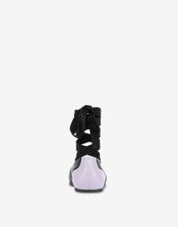 THE RESORT 2026 COLLECTION FEATURES TENNIS SHOE-INSPIRED BALLET FLATS MADE OF CALFSKIN AND SUEDE, WITH WHITE LACQUERED LETTERING LOGO AND RIBBONS THAT WRAP AROUND THE ANKLE. PRODUCT DETAILS - ROUND TOE - LEATHER LINING - FLAT RUBBER SOLE BOTTOM: 100% RUBBER - UPPER: 85% CALFSKIN, 15% SHEEPSKIN - LINING: 100% CALFSKIN SKU: POLMA15031G1OMFC00A