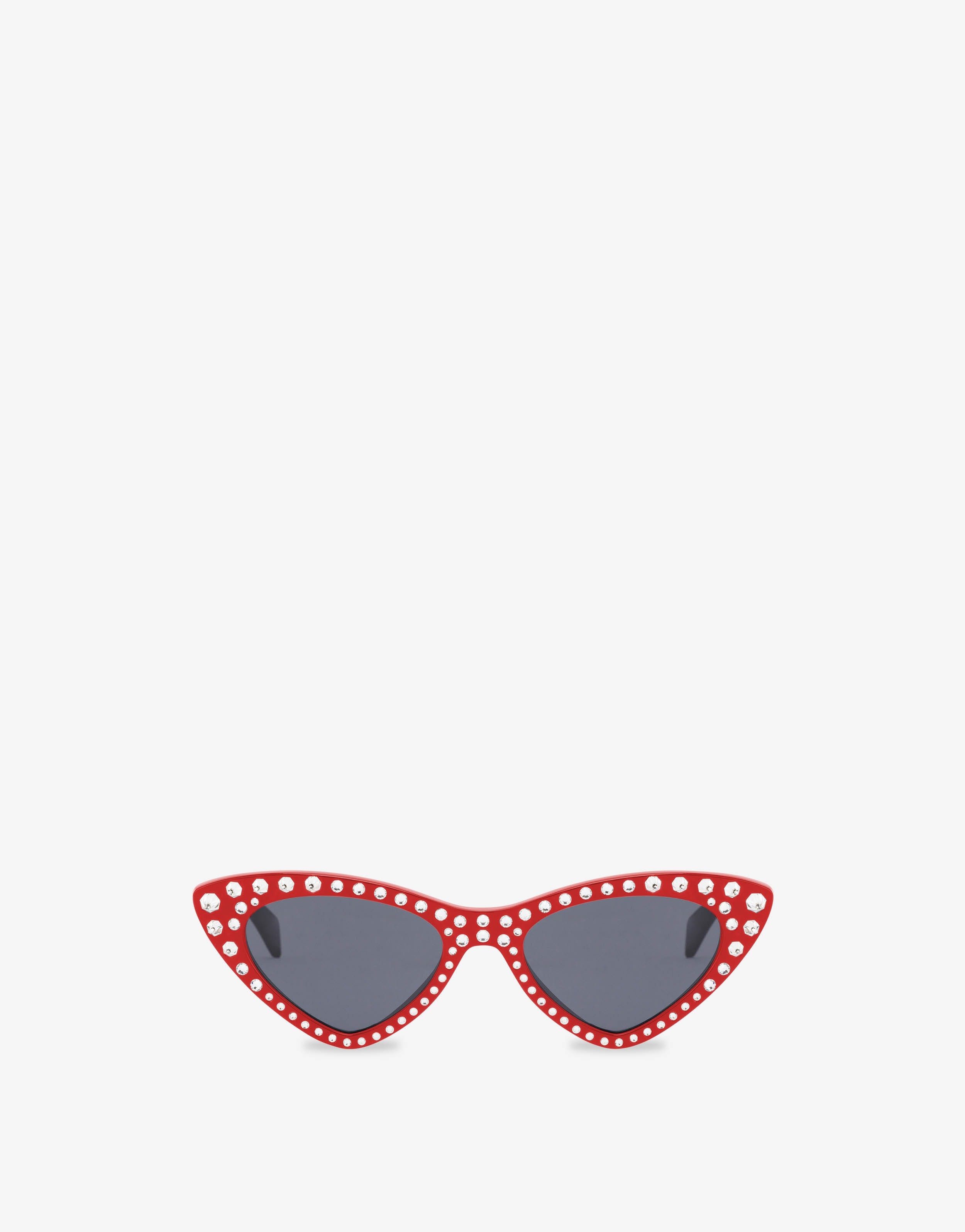 - Acetate frame with round and conical rhinestones decoration - Golden logo at the beginning of the temple - Dark lenses - UV protection Frame:100% Acetate, 100% Cellulose acetate Code: SAFMOS006SSTR52IRC9A