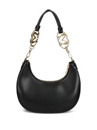 chain-embellished crescent shoulder bag Highlights - Black - Crescent shape - Gold-tone chain embellishment - Zip fastening - Top handle - Logo lettering Imported Composition Polyurethane 100%, Leather 100%