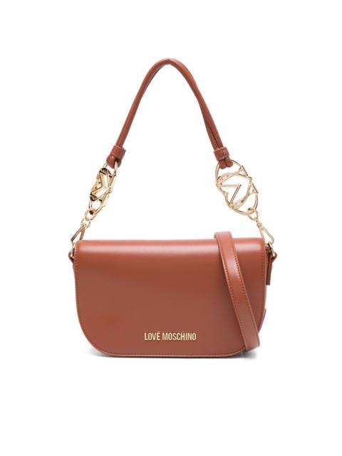 chain-embellished shoulder bag Highlights - Black - Curved silhouette - Gold-tone chain - Flap closure - Top handle Imported Composition Outer: Polyurethane 100% SIZE & FIT Model measurements Height 5 ft 10 in(1.78 m) Bust/Chest 33.46 in(85 cm) Hips 36.22 in(92 cm) Waist 23.22 in(59 cm) Measurement DEPTH 2.36 in(6 cm) HEIGHT 5.51 in(14 cm) WIDTH 8.66 in(22 cm)