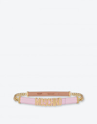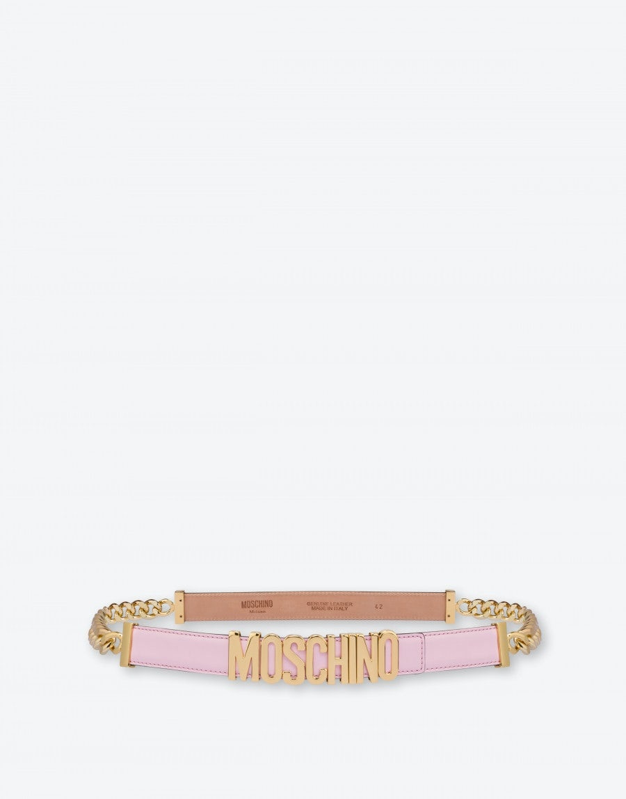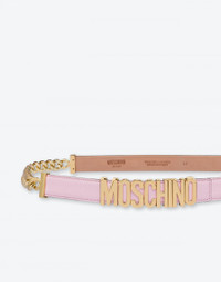 Calfskin belt with chain inserts and gold galvanic Lettering logo. - Low waist - Gold galvanic chains - Logo buckle - Adjustable mushroom closure Fabric : 100% Calfskin Code: 2212 A805580060224 Size - Height : 3 cm
