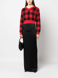 check-pattern wool-blend jumper Highlights - Bright red/black - Wool blend - Check pattern - V-neck - Long sleeves - Ribbed cuffs and hem Imported Composition Wool 50%, Viscose 35%, Polyamide 10%, Cashmere 5% SIZE & FIT Model measurements Height 5 ft 11 in(1.8 m) Bust/Chest 31.49 in(80 cm) Hips 36.22 in(92 cm) Waist 25.59 in(65 cm) FittingInformation Designed for a relaxed fit, this piece allows for comfort and movement when worn The ribbed hem offers a close, comfortable fit Made with a midweight knit, this piece offers some stretch This piece fits true to size – take your usual size Washing instructions Dry Clean Only