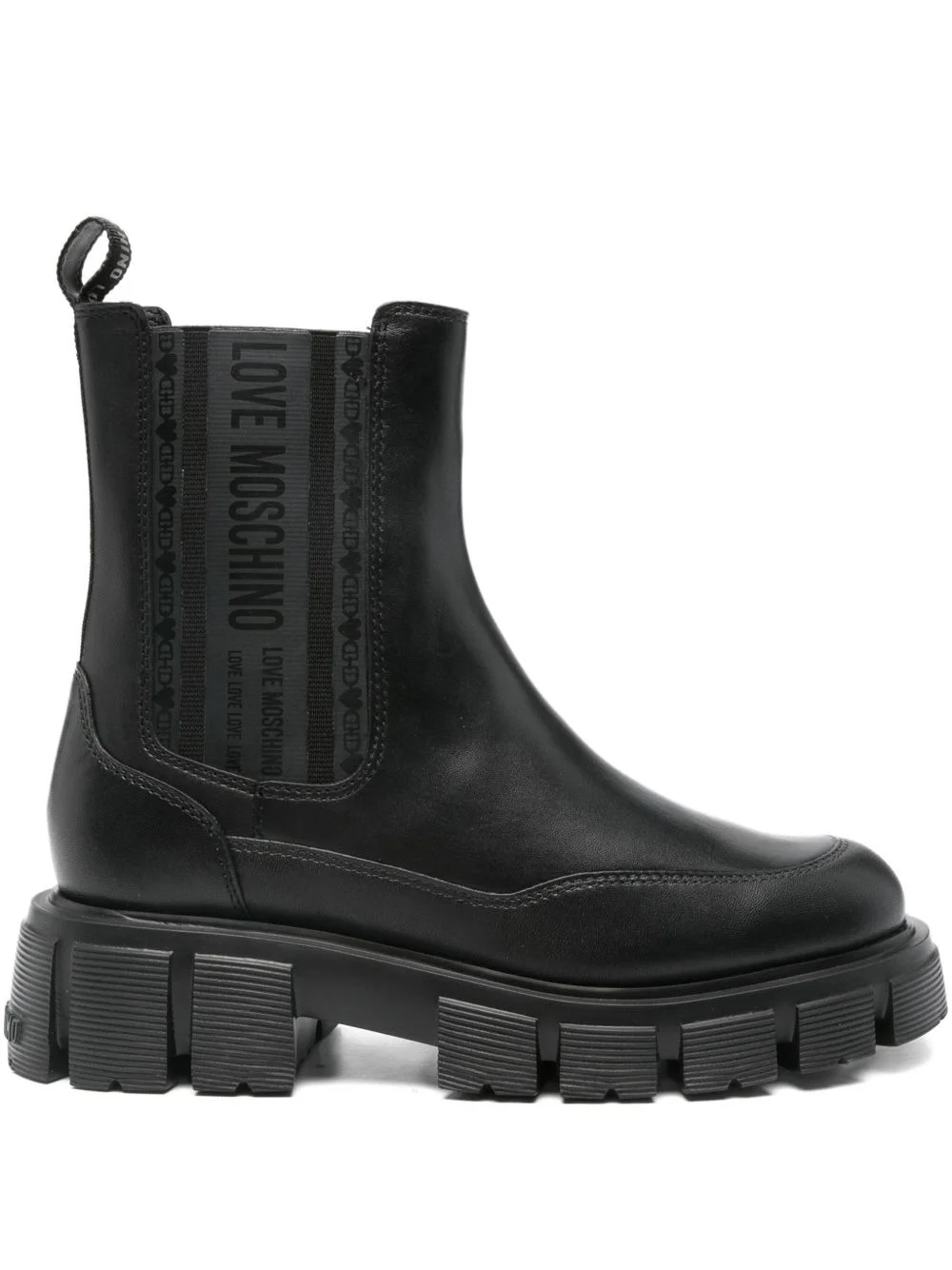 40mm leather chunky boots Highlights - Black - Calf leather - Elastic side panels - Pull tab - Chunky rubber sole - Round toe Imported Composition Outer: Calf Leather 100%, Fabric 100%, Polyurethane 100% Sole: Rubber 100% Lining: Rubber 100% SIZE & FIT Measurement HEEL 1.57 in(4 cm)