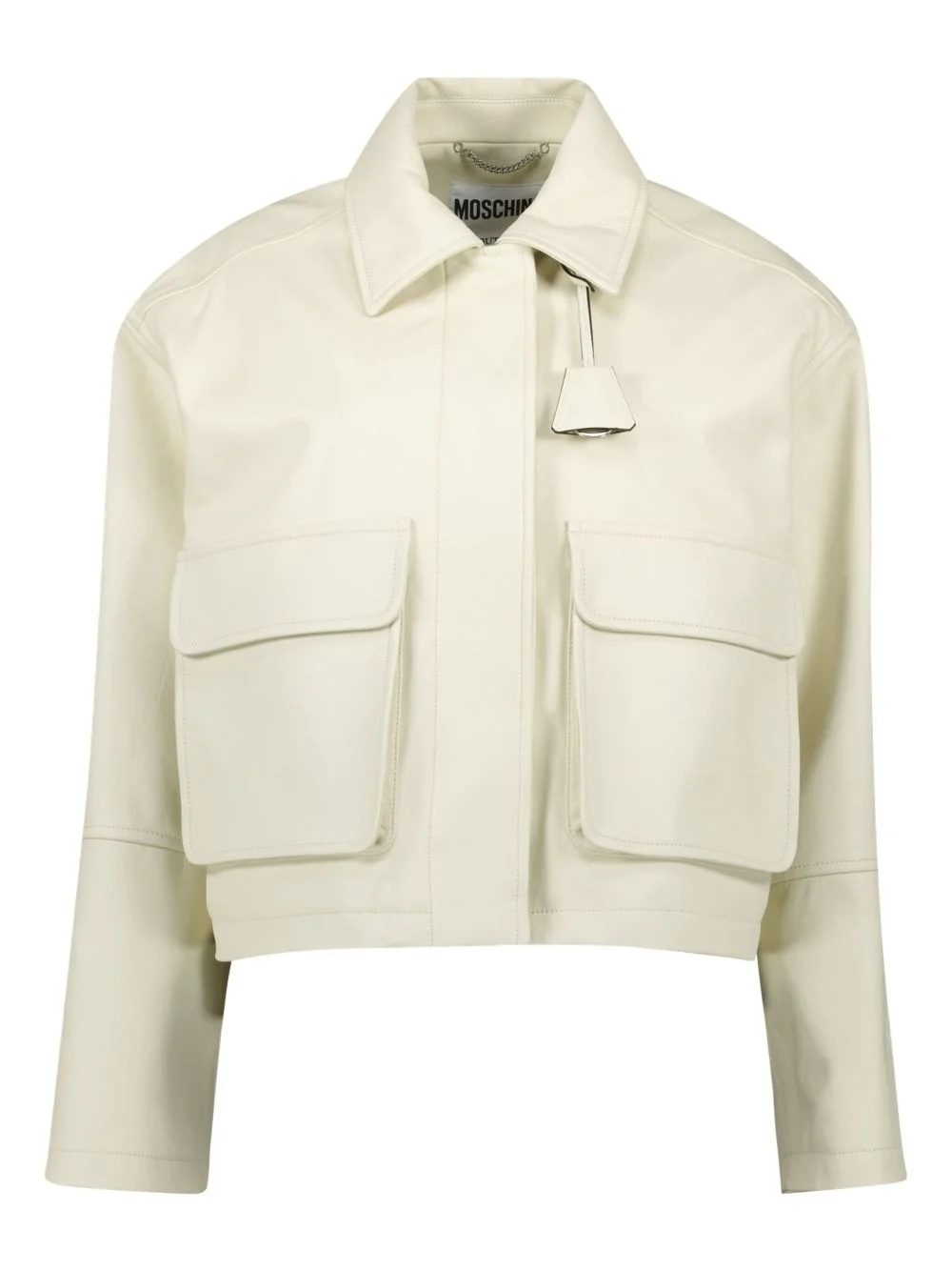 leather jacket Highlights - Light beige - Concealed front fastening - Two chest flap pockets - Classic collar - Long sleeves Imported Composition Calf Leather 100%