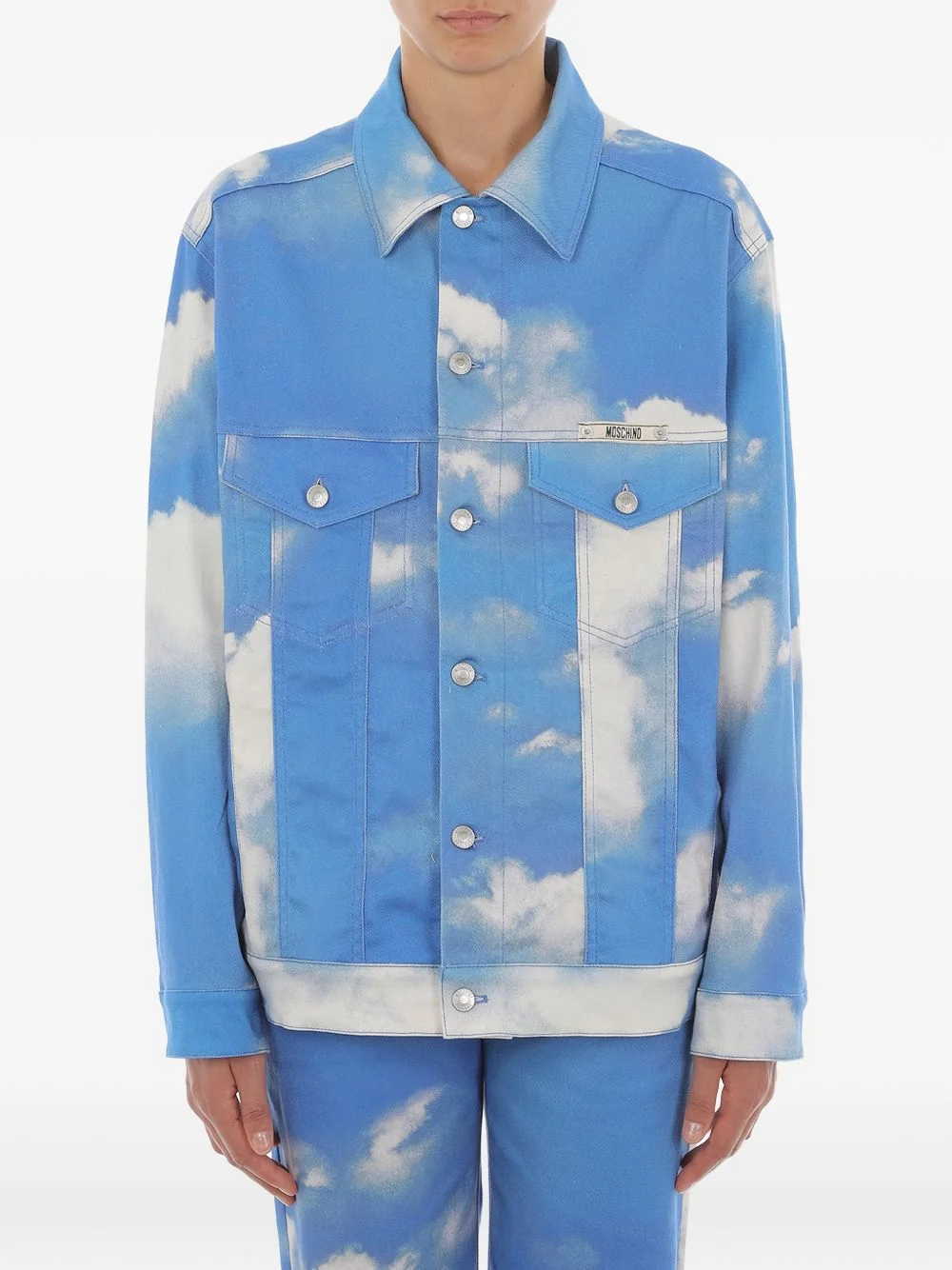 clouds cotton jacket Highlights - Light blue - Clouds print - Button fastening - Chest pockets - Silver-tone hardware - Point collar Imported Composition Cotton 100% Washing instructions Read Manufacturer Guidelines