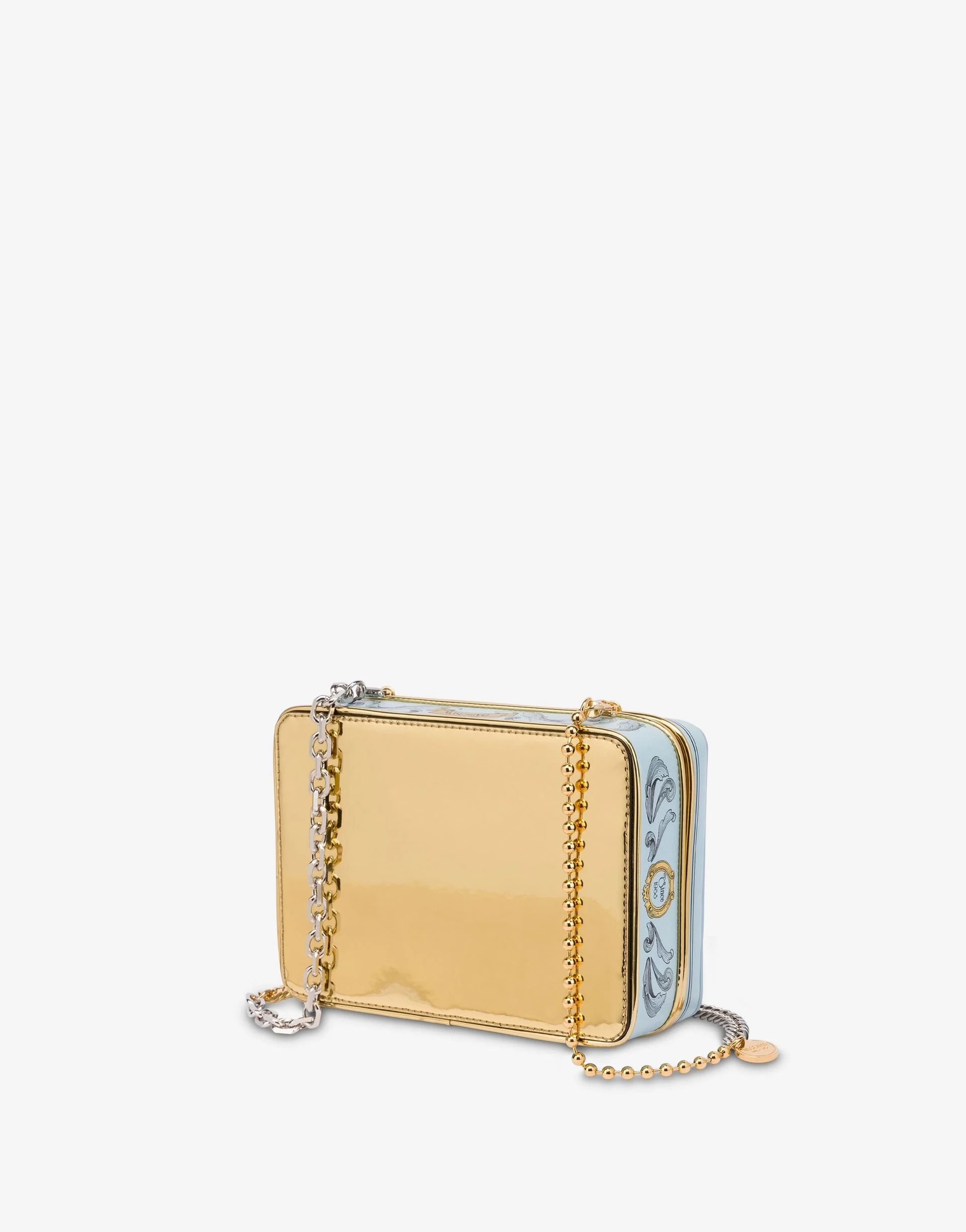 THE FALL/WINTER 2025 PRE-COLLECTION PRESENTS A NAPPA LEATHER CLUTCH INSPIRED BY THE DESIGN OF A COOKIE BOX. FEATURING A DIGITAL PRINT AND GOLD-LAMINATED LOGO, IT IS FINISHED WITH A MIRRORED GOLD BASE AND TRIM. PRODUCT DETAILS - REMOVABLE CHAIN SHOULDER STRAP - MAGNETIC CLOSURE - LINED INTERIOR UPPER: 70% POLYURETHANE, 20% POLYESTER, 10% THERMOPLASTIC POLYURETHANE - LINING: 60% POLYAMIDE, 40% POLYURETHANE SKU: POLMC4043PP1NOS871A