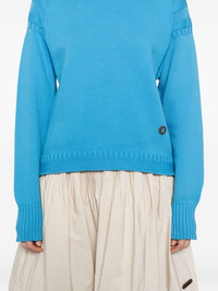 cotton-blended jumper Highlights - Cerulean blue - Crew neck - Ribbed cuffs and hem - Long sleeves Imported Composition Cotton 62%, Polyamide 38% SIZE & FIT Model measurements Height 5 ft 10 in(1.78 m) Bust/Chest 31.88 in(81 cm) Hips 37 in(94 cm) Waist 25.19 in(64 cm) FittingInformation Designed for a relaxed fit, this piece allows for comfort and movement when worn Made with a midweight knit, this piece offers some stretch Washing instructions Hand Wash