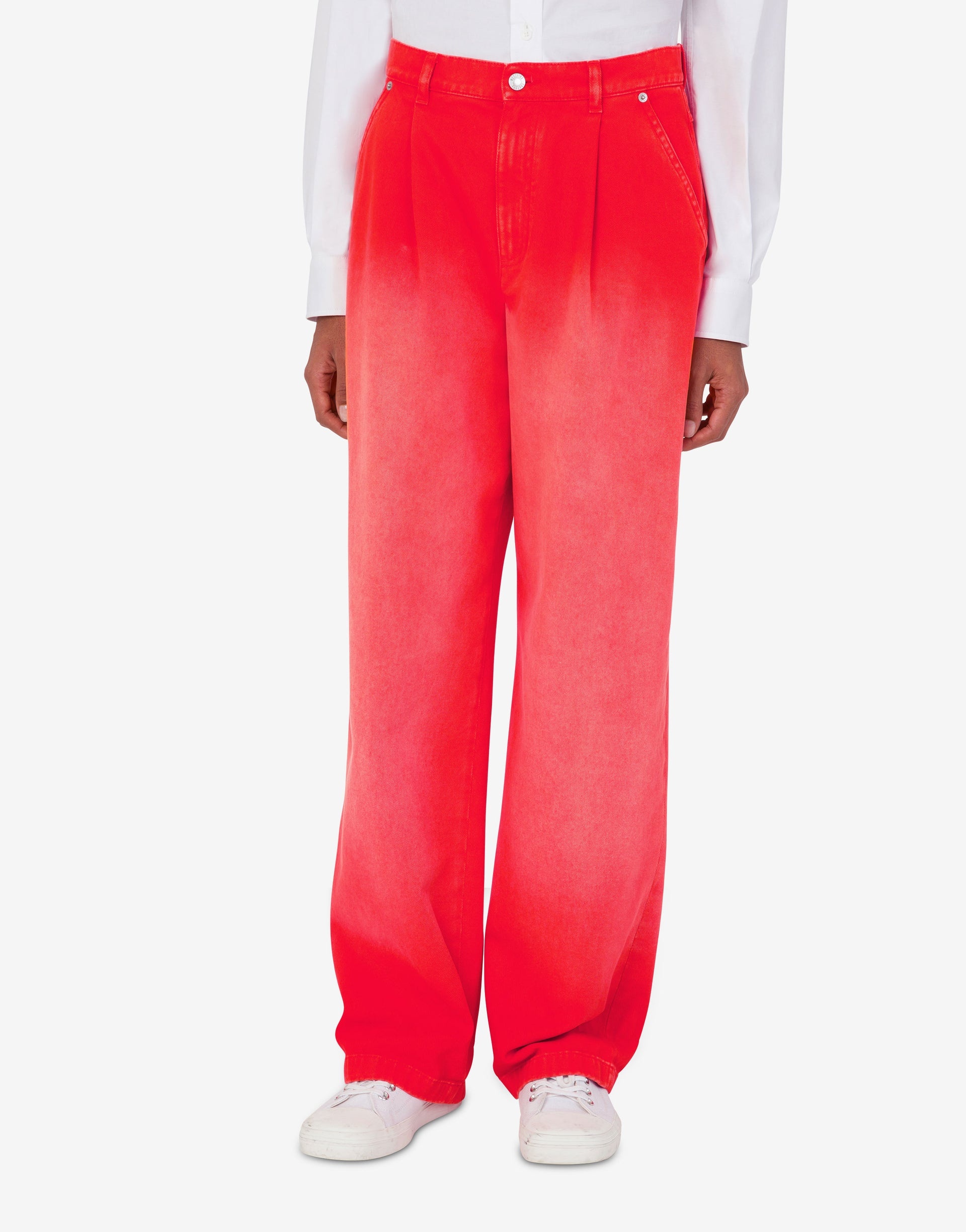 COTTON BULL PANTS WITH FRONT PLEATS AND AN OVERSIZED FIT. THE BACK IS PERSONALIZED WITH AN ARCHIVE LOGO LAUREL CROWN PATCH. PRODUCT DETAILS RELAXED FIT - PATCH WITH LOGO PRINT WITH LAUREL CROWN - REGULAR WAIST - TWO FRENCH POCKETS - TWO BACK POCKETS - BELT LOOPS - FRONT COVERED ZIP AND BUTTON CLOSURE FABRIC: 100% COTTON SKU: AEF251D A032504212112 FITTING & DIMENSIONS - MODEL HEIGHT: 180 CM - MODEL BUST: 80 CM - MODEL WAIST: 60 CM - MODEL HIPS: 89 CM - MODEL SIZE: 40