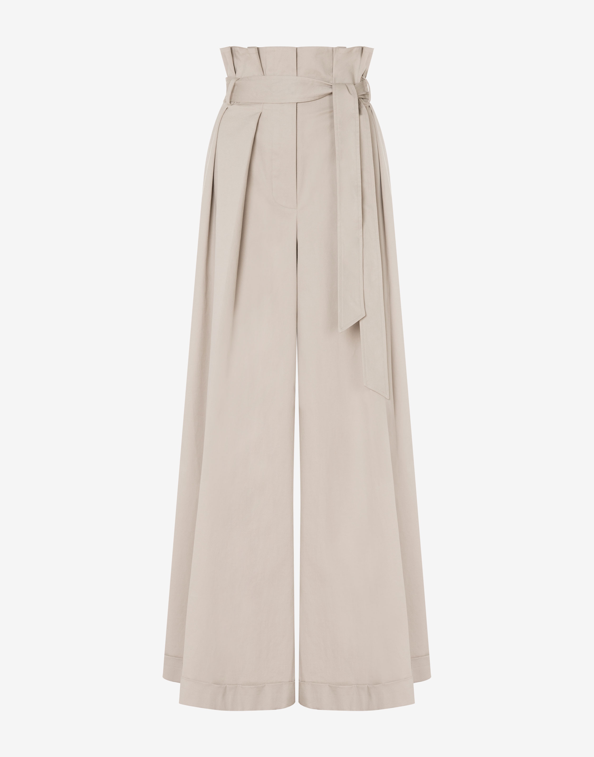 Stretch cotton canvas oversized A-line trousers with sash at the waist and Classic Pant patch. - Oversize fit - Embroidered patch on the back - High waist - Belt tied at the waist - Pleats at the front - Belt loop detail at the waist - Flared fit - Front button fastening - Two welt pockets on the back Fabric:96% Cotton, 4% Elastan Lining:60% Cellulose acetate, 40% Cupro Code: AEF241D 030404200515 FIT - Oversize fit - Model bust size : 82 - Model height : 1.78 cm - Model Hips : 88 cm - Model size : 40 - Model waist : 60 cm
