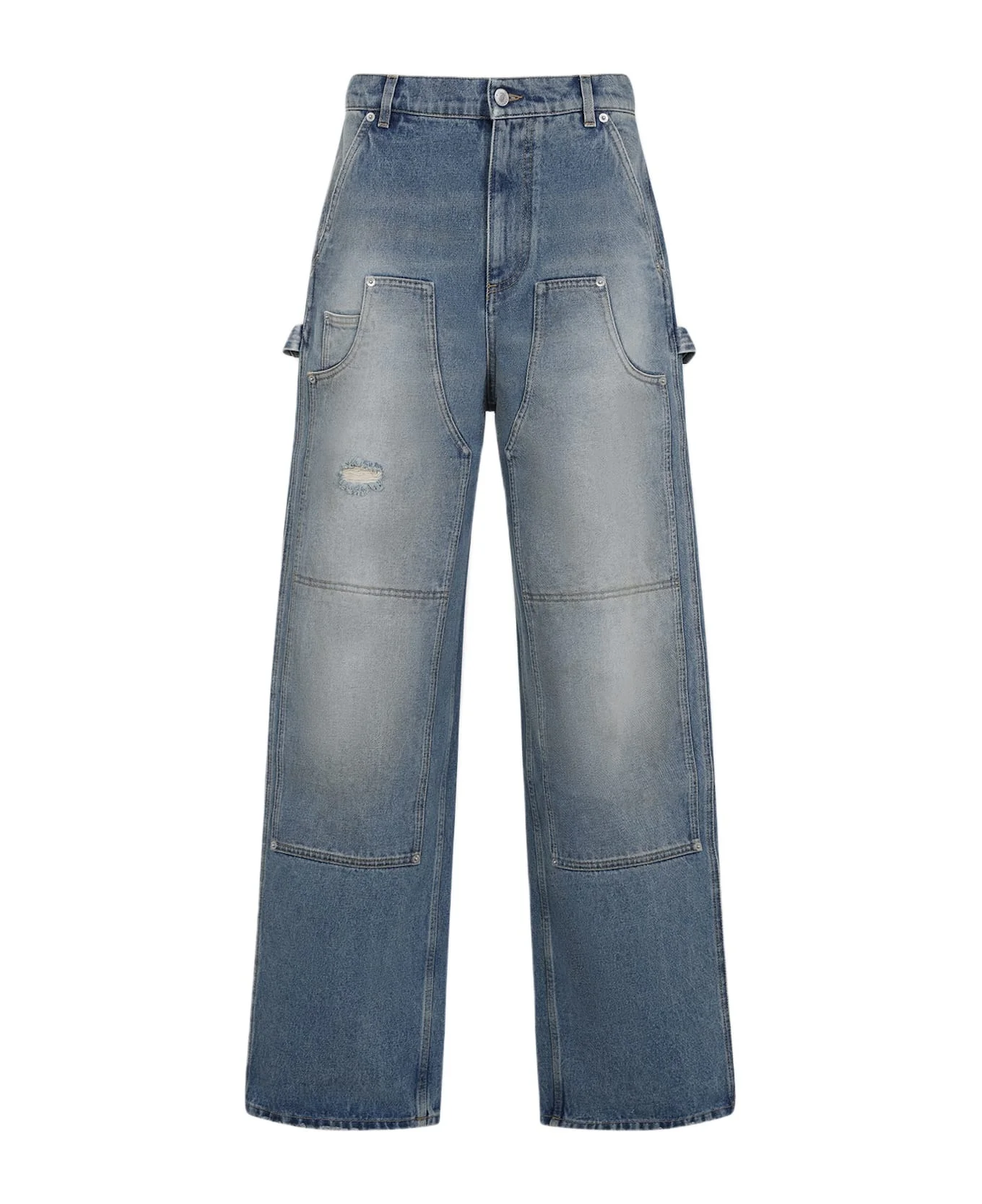 Moschino Blue Cotton Jeans. Washed blue cotton denim, light used effect, high-waist, belt loops, front button and fly-zip fastening, slant pockets, three patch pockets on the back, hammer loops details, wide leg. Made in: Italy Color: Blu Model number: 251E032005230281