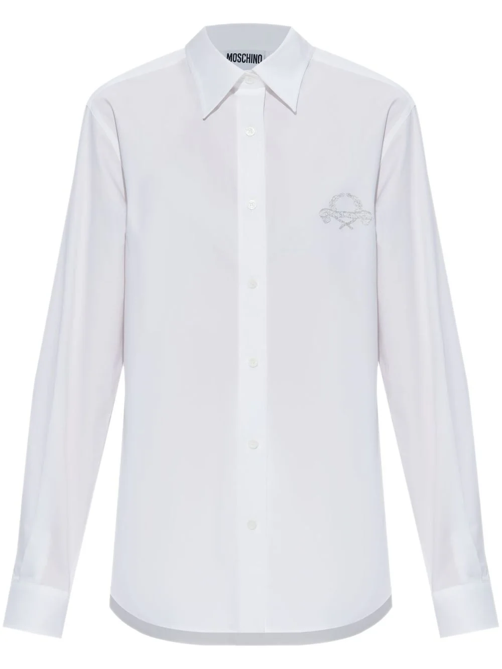 cotton shirt Highlights - White - Front button fastening - Embroidered logo at the chest - Long sleeves - Buttoned cuffs Made in Italy Composition Cotton 100%