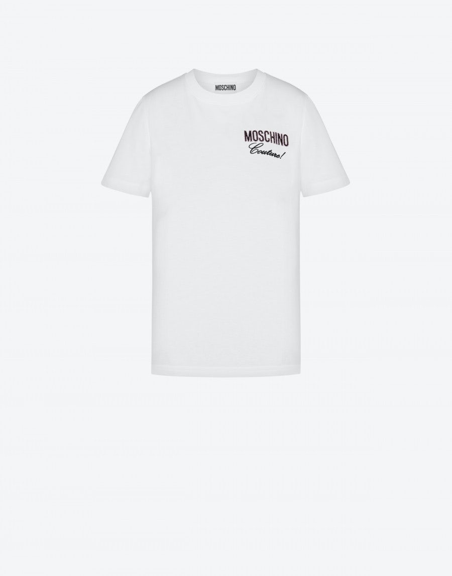 MOSCHINO COUTURE EMBROIDERY ORGANIC COTTON JERSEY T-SHIRT.